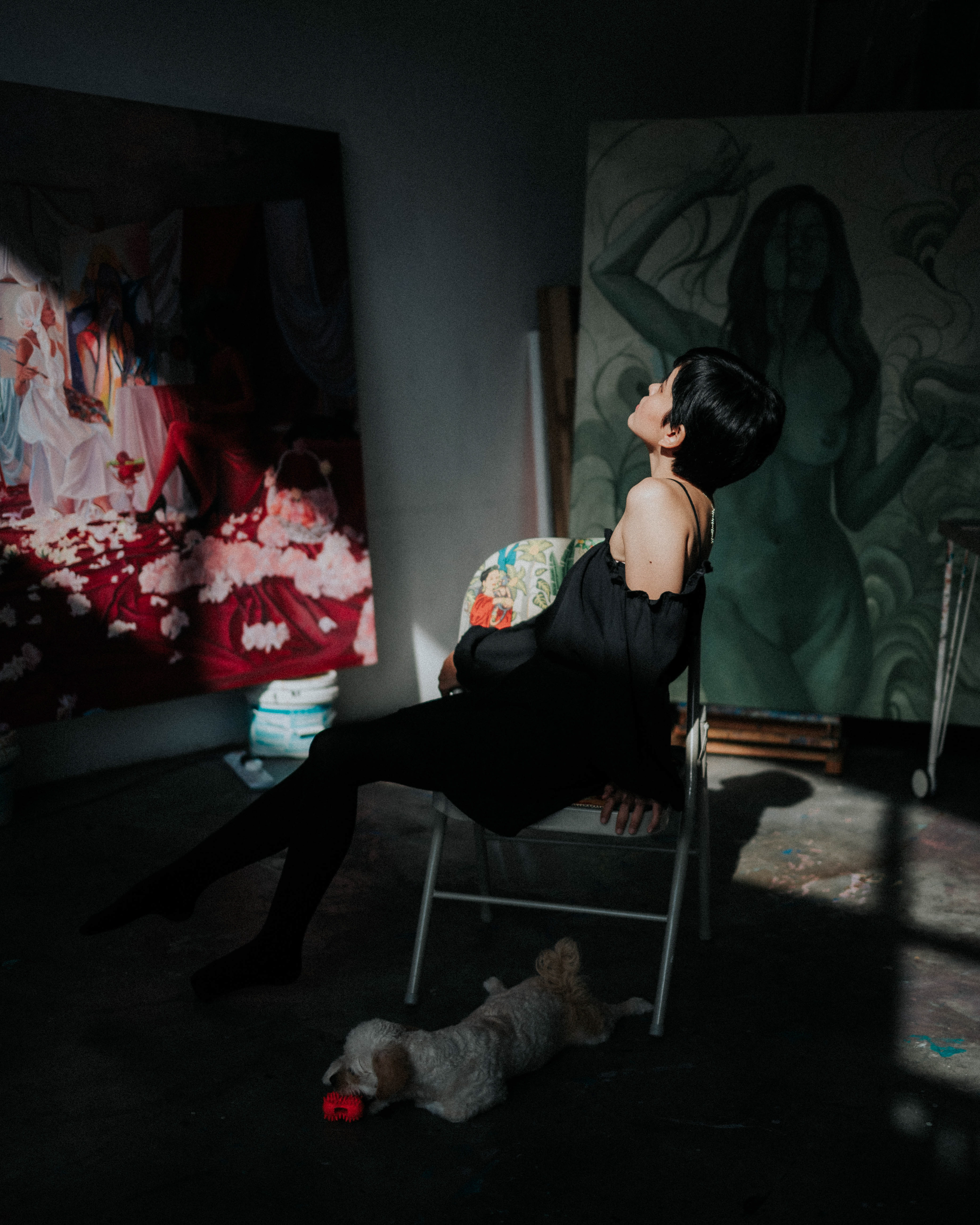 I often paint in daylight, allowing natural light to guide me. It softens the tones, breathes warmth into the figures, and reminds me of impermanence, how light changes, how feelings shift. My works move between the outer world and the inner one.